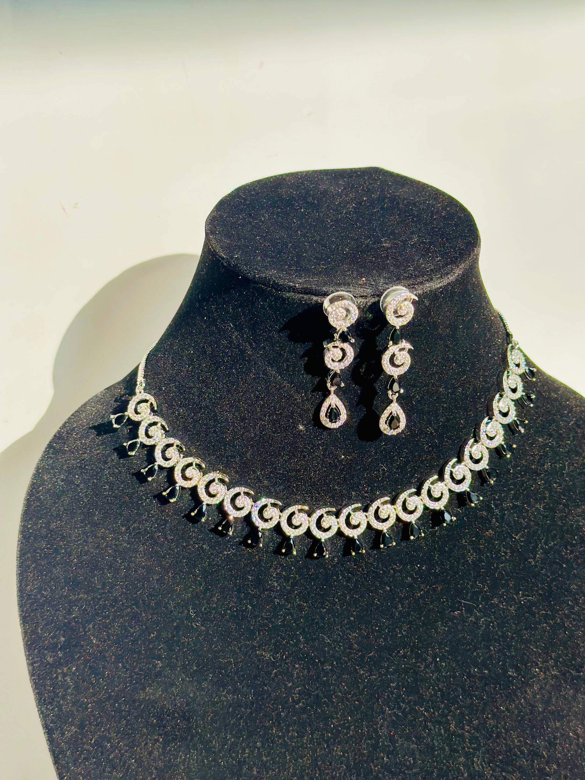 Make a statement with our stunning black shining Luxe Luster set, complete with drop earrings that exude sophistication and glamour. This exquisite set is perfect for occasions , adding a touch of luxury to any outfit.