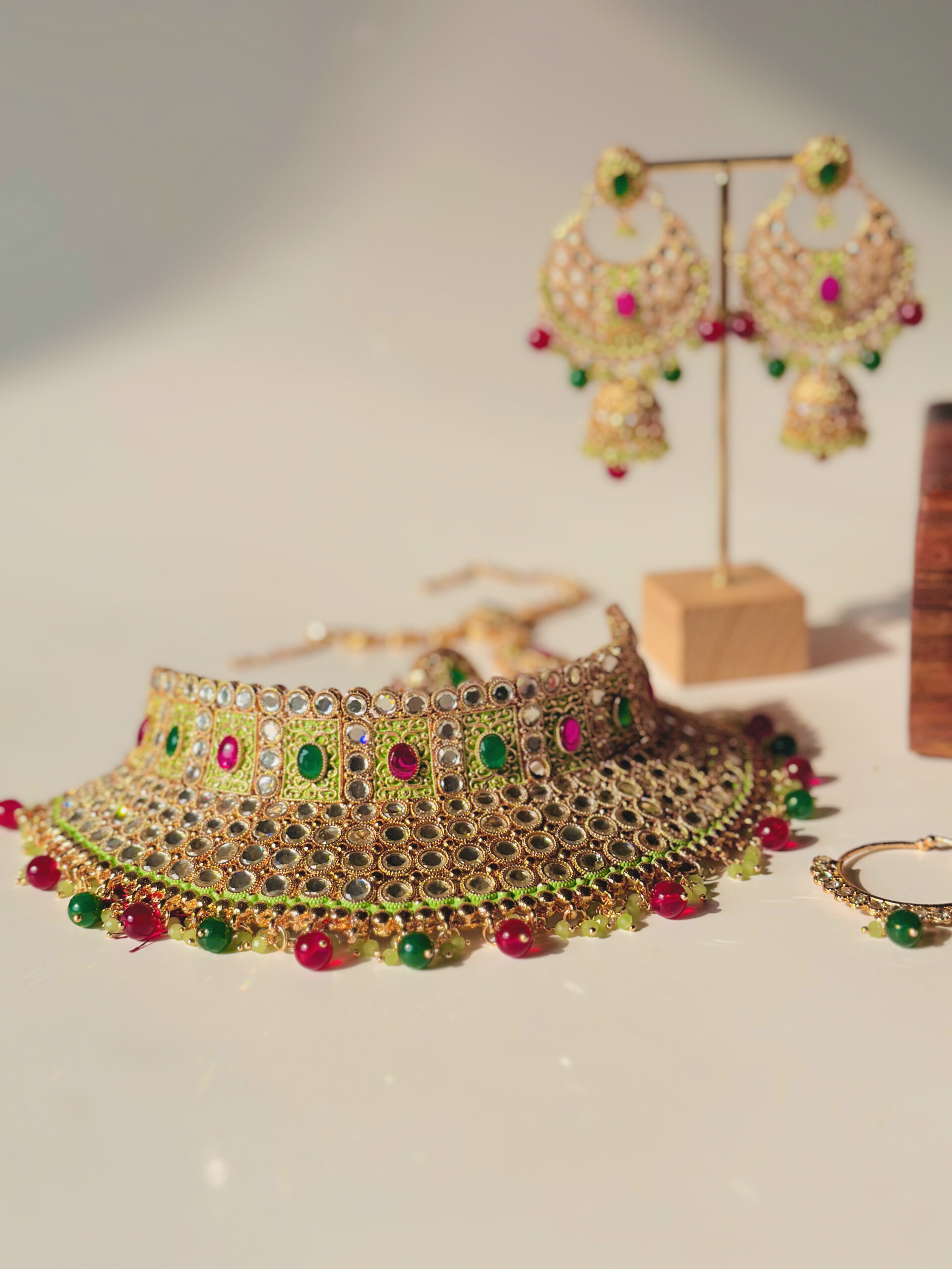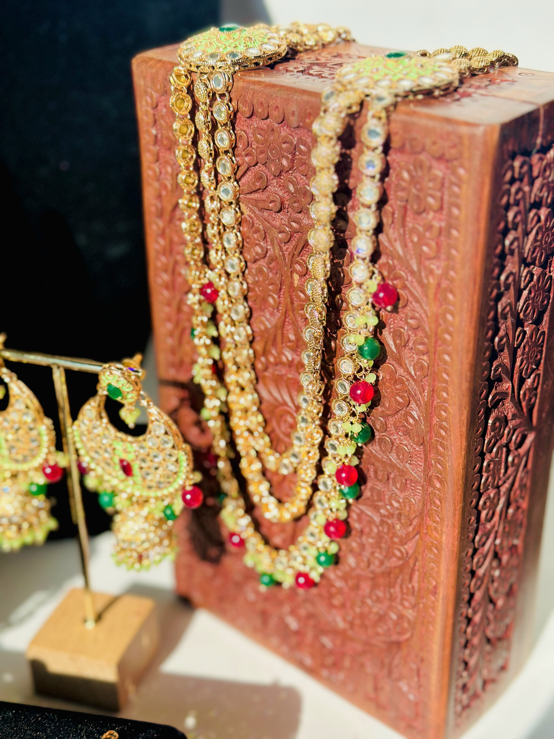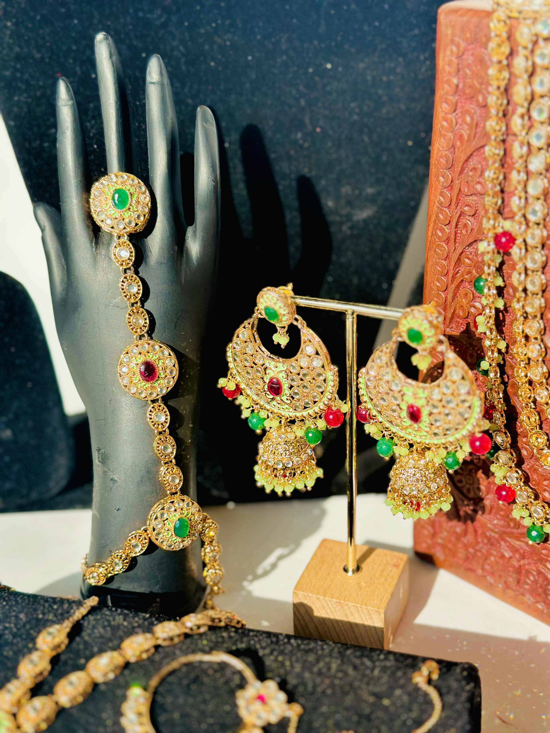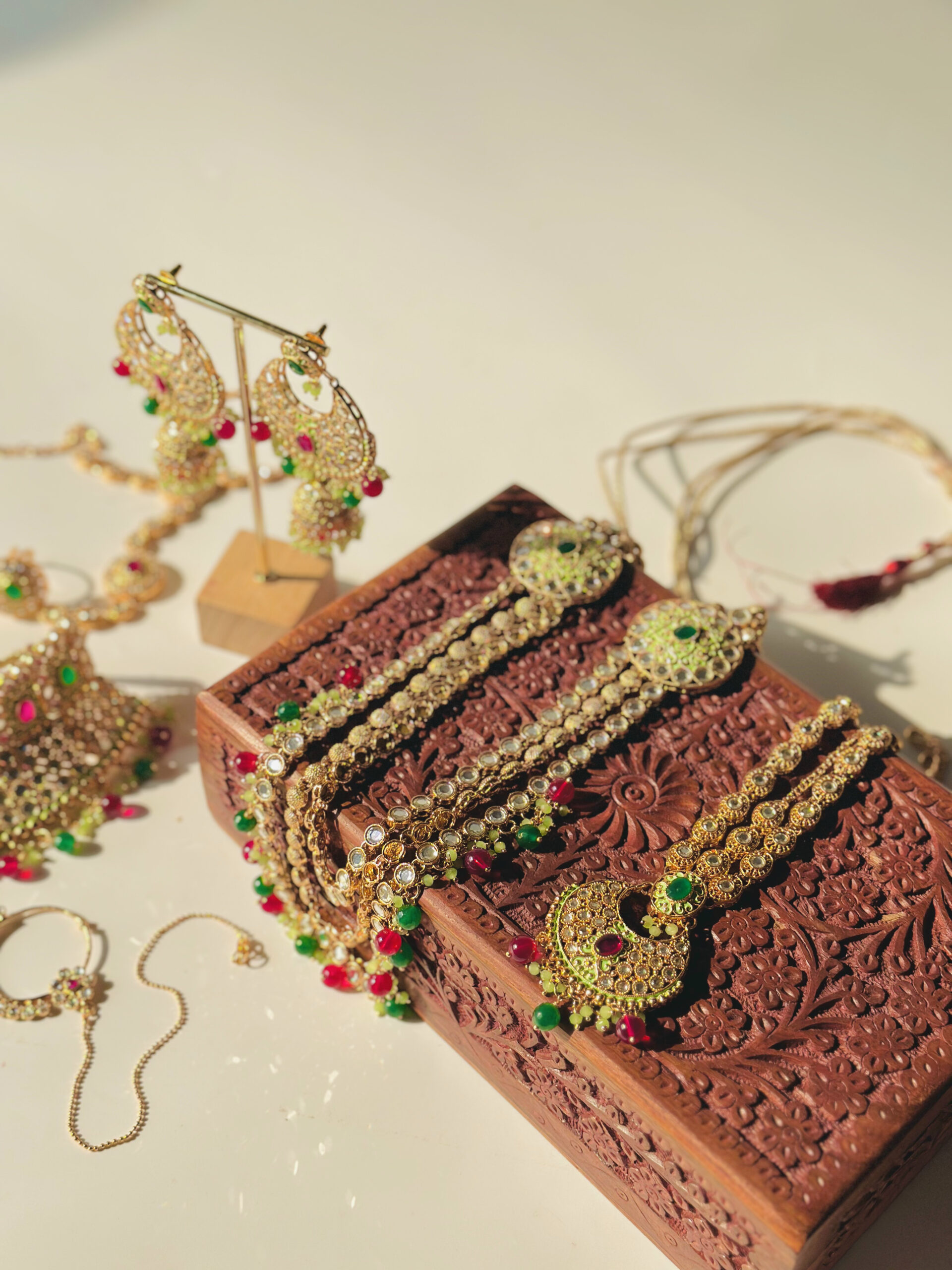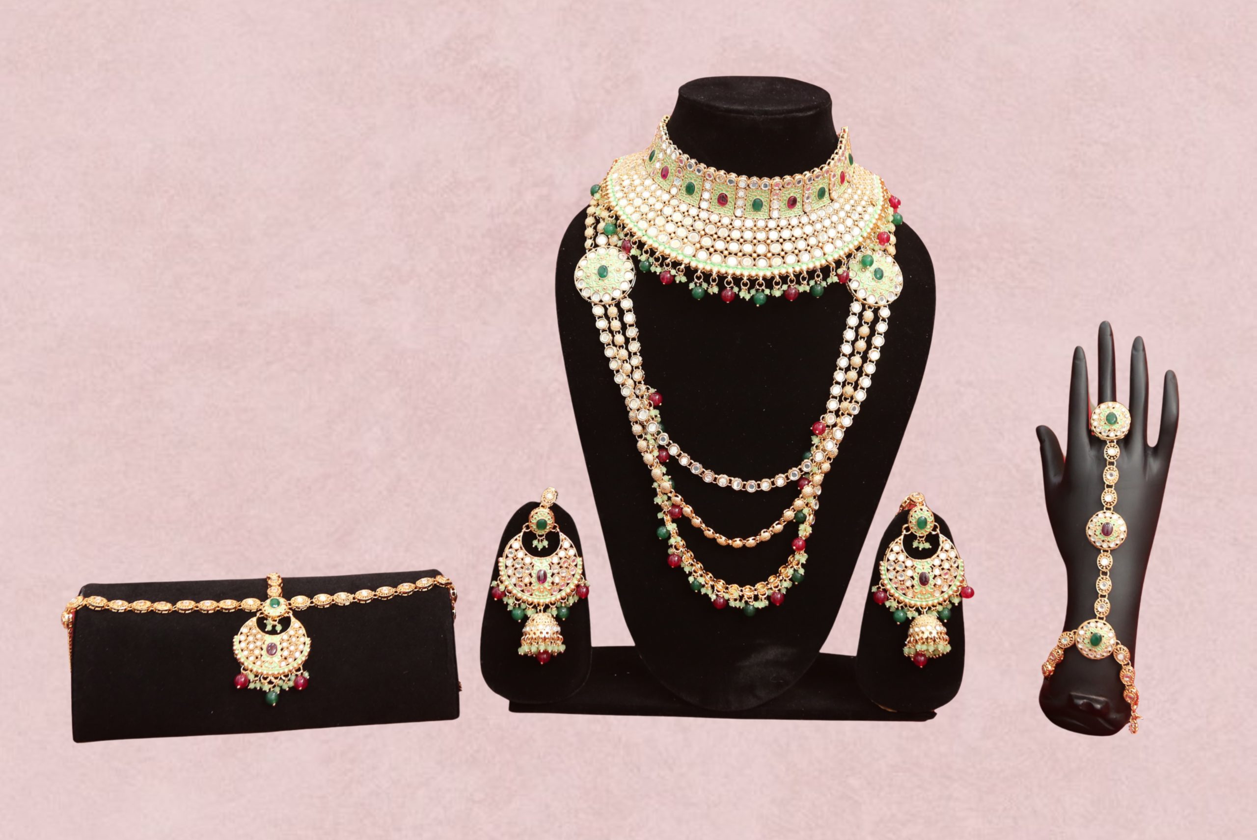 - Set Include: Necklace , Long Set , Pair of Earrings , Pair Of Hathphool , MathaPatti , and A Nath.